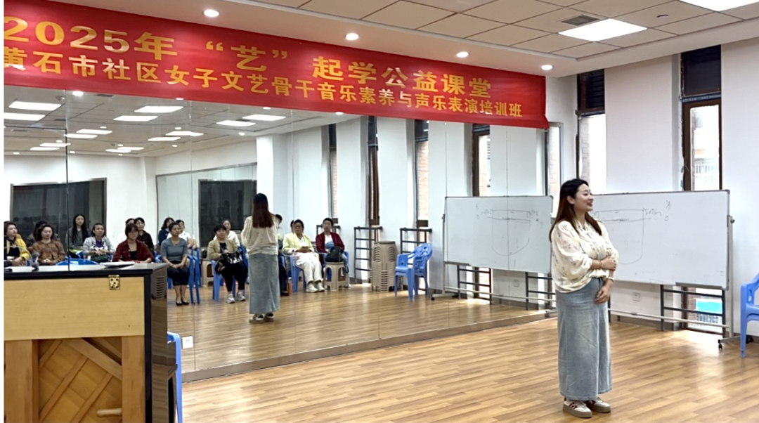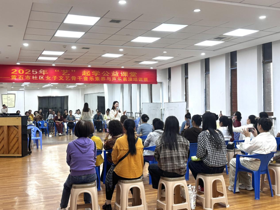 "do-re-mi——"10月15日上午,黄石市群艺馆里传出阵阵悦耳的歌声,2025年"艺"起学公益课堂——黄石市社区女子文艺骨干音乐素养与声乐表演培训班正式开课啦!